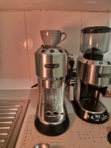 • Daher probiert man vor allem am Pulver herum. Eine günstige Rommelsbacher Mühle bringt leider gar nichts (zu grob), bei uns wurde es dann eine Graef CM800. Ja, die kostet dann fast soviel wie die Dedica, aber das ist sie auch wert. Wirklich.