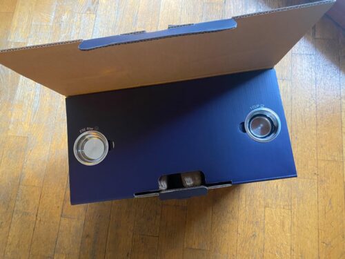 Bei der CM800 haben wir das innere Mahlwerk volle 5 Stufen/Schrauben Richtung „fine“ gestellt. Am äußeren Ring steht sie auf 4. Das ist so fein, dass das Pulver relativ langsam kommt und leicht klumpt. Ein bisschen wie Puderzucker.