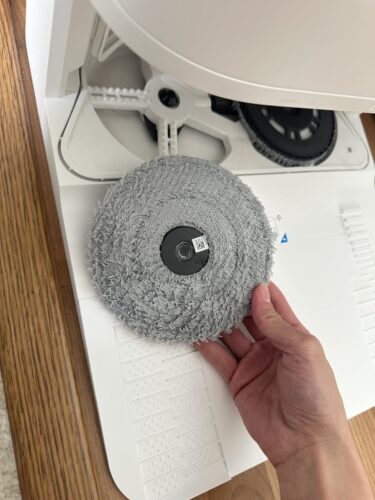 The bottom of the docking station is designed to rinse and clean the mop heads, which is very cool, but you’ll still need to clean it out once in a while to keep it cleaning well. Inside there is a clean water tank (we are using distilled water because our water is very hard here) as well as a dirty water tank that you need to dump after each cycle.
