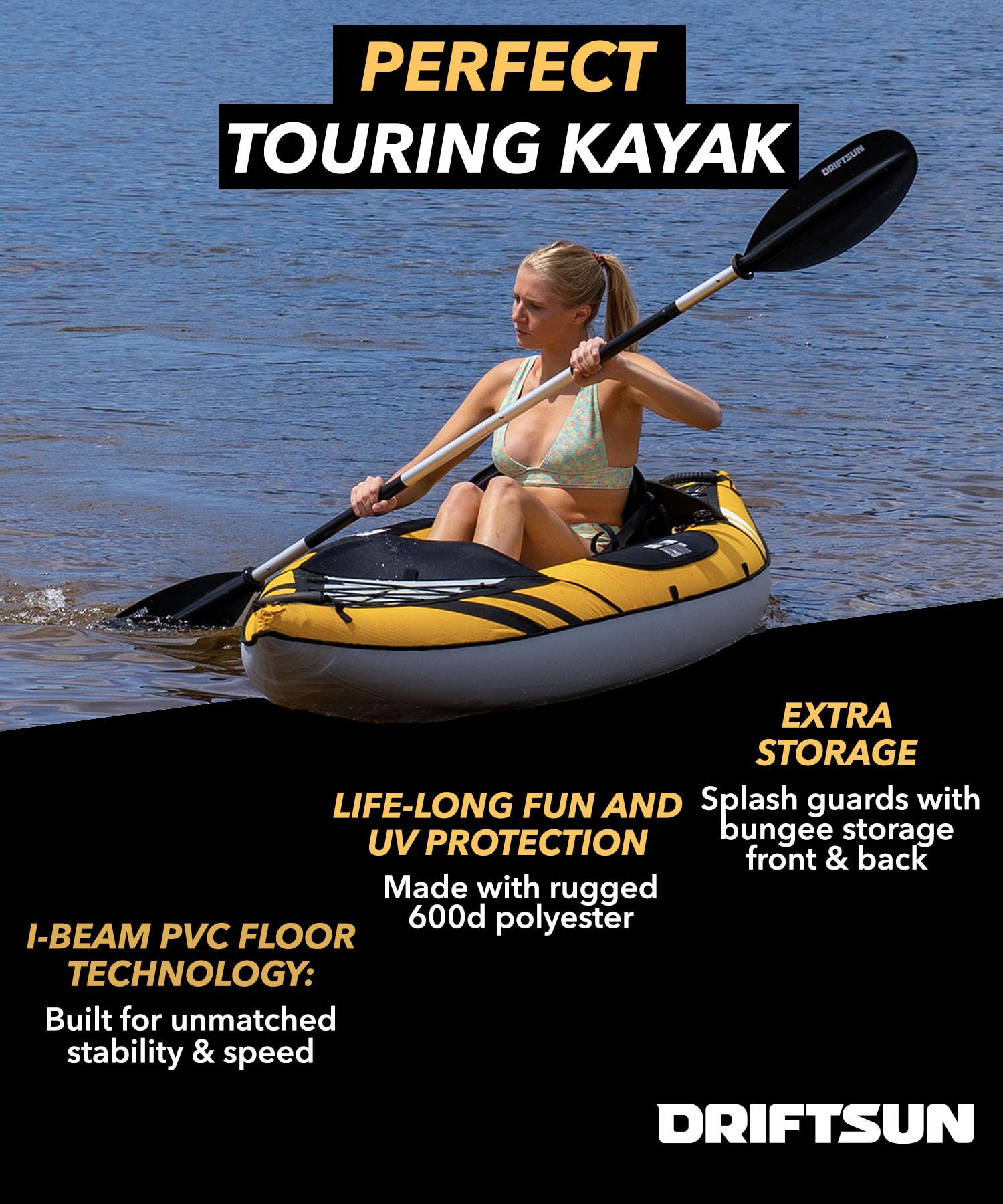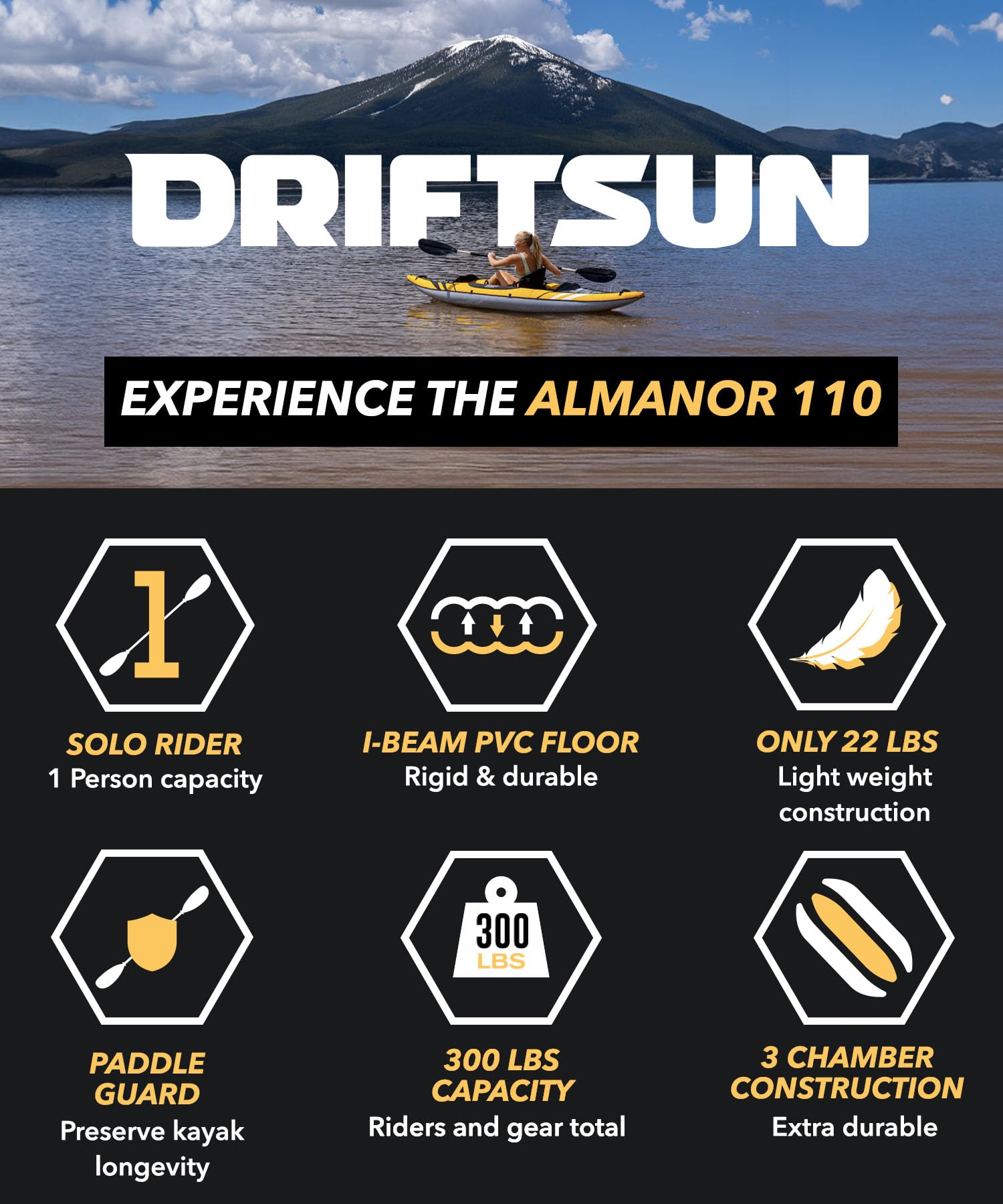 The Driftsun Almanor 146 Inflatable Kayak is the complete outdoor-adventure ready package you need to own the water. It’s lightweight design will put you on the water fast. It’s workmanship impeccable. It’s quality inspections ruthless. The lakes are waiting. Go with a Driftsun.