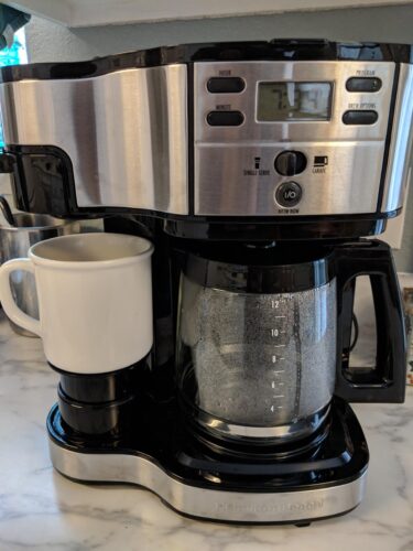 This maker can be used to brew single cups on one side or a full pot on the other side. Typically, I am the only coffee drinker in my house. Sometimes we have guests. This coffee maker allows me to serve both situations easily.