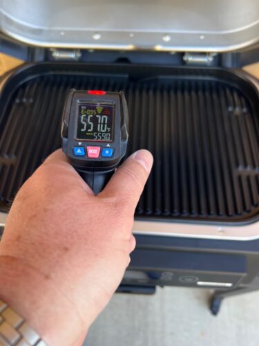 In “grill” mode on the “Hi” temperature setting, I was able to heat the cooking surface to almost 560 degrees which is hot enough for searing (barely), and it heats pretty evenly.