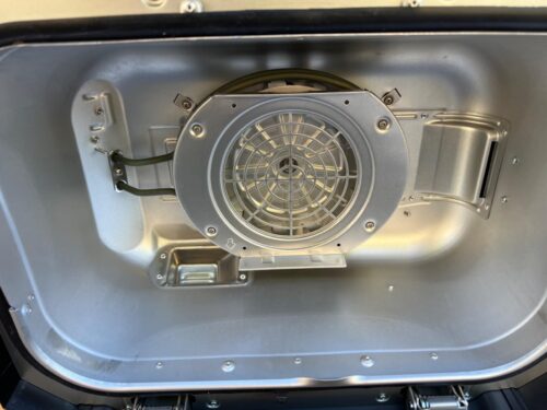 Included is a non-stick grill surface, an air crisp basket, temperature probe, 2 small bags of pellets, a grease tray and liner, a pellet scoop, and documentation. The build quality is pretty good and about what I’ve come to expect from Ninja. The base and handles are plastic, and the lid is cast aluminum. It features an intuitive digital control panel, a convection fan, an integrated temp probe port, and temp probe storage.