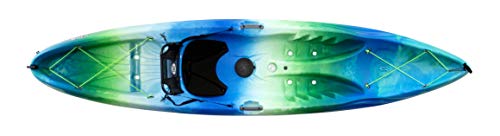 - Enhance your kayaking experience with ample storage – front and rear tank wells secured with bungee tie-downs and a center storage hatch for essentials, complete with a built-in drink holder for your convenience.