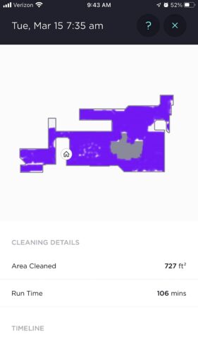 4/28/23 Still the best purchase we have made for our home cleaning. No change there...but a small observation...recently replaced some furniture and changed the layout of our home. We had to move the dock from a north to south orientation to an east to west...and, I swear, it now navigates even better than before.