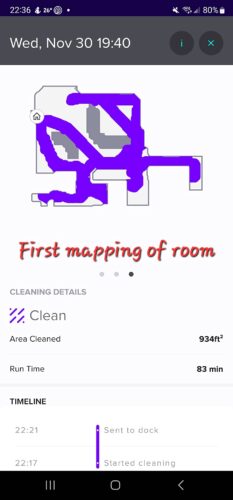 Today is day #2 with the bot. When I got up this morning, I asked Google Home what the status of the bot was and when it responded it was on its base with 100% battery, I told it to start cleaning. I just want to accelerate the mapping process.