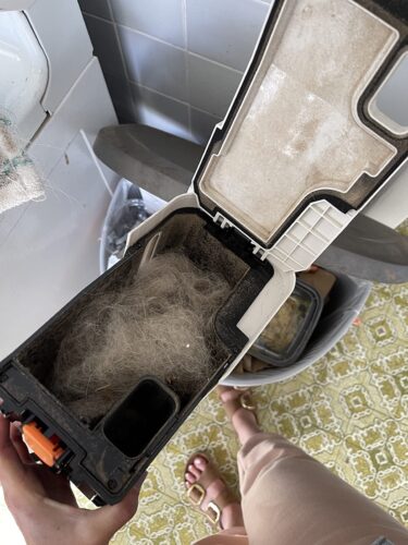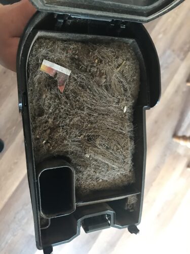 We have run it TWICE so far, and the amount of dirt and hair it has picked up is absurd - good absurd in the sense that the vacuum is doing it's job, bad absurd in that ew.