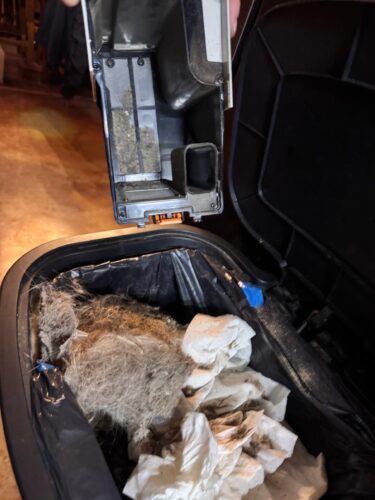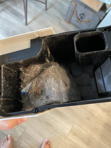 It lined up and backed itself into the base. A few seconds later, it self-emptied into the base. I thought, thats a useless exercise. I had run my other robot vacuum only an hour or so before the Shark IQ arrived. The floors were already clean. Well, apparently not! It had picked up an impressive amount of stuff that the bot from that robotics company had missed! Nice!