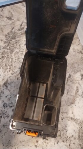 Upon completion we checked the recovery bin and were amazed at the volume of dust and dirt that this little worker vacuumed up! She's hired!