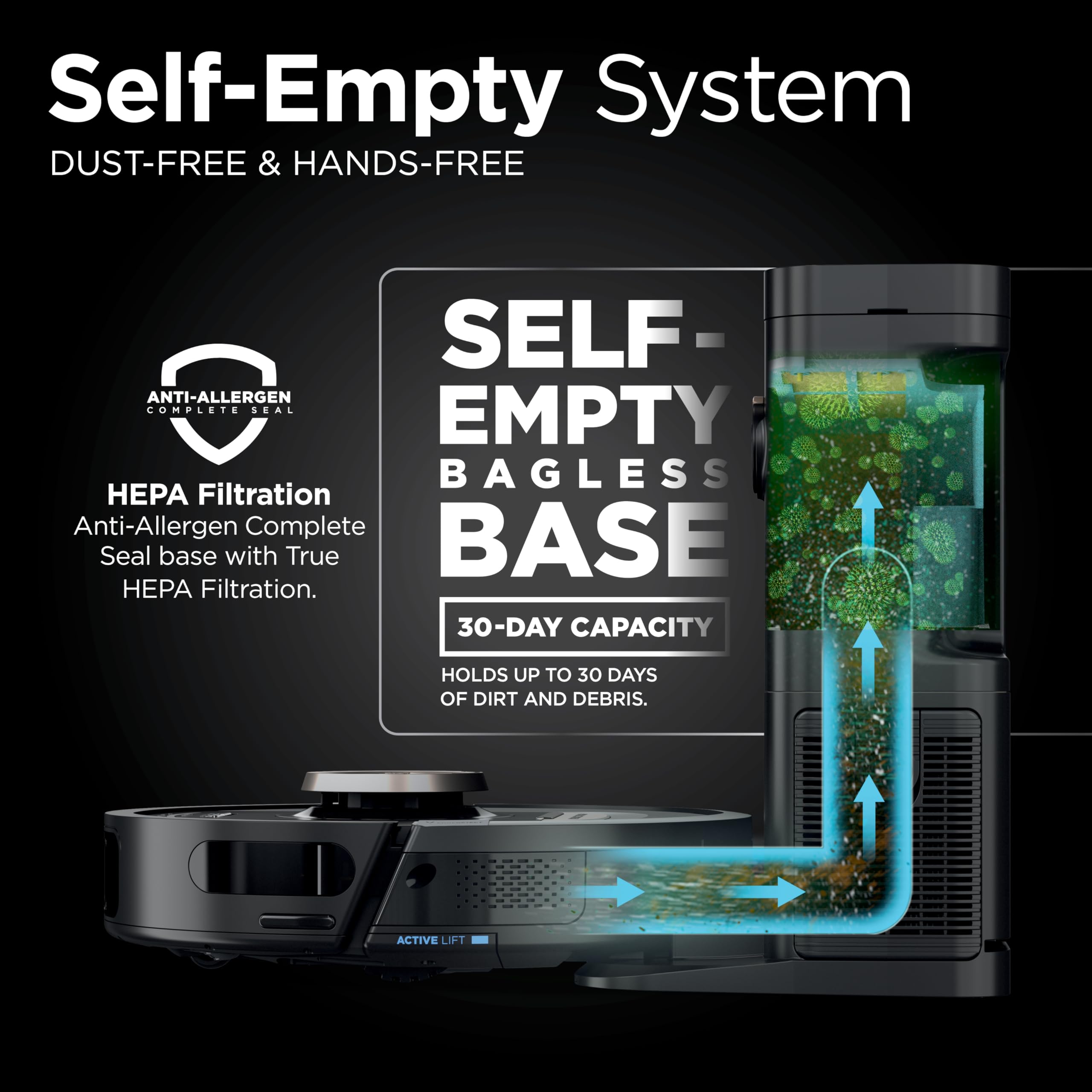 - 🗑️ HEPA Self-Empty Base: Holds up to 60 days of dirt and debris with a HEPA filtration system that captures 99.97% of dust and allergens (down to 0.3 microns).